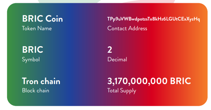 BRIC COIN — token formed within the natural framework of the Tron blockchain